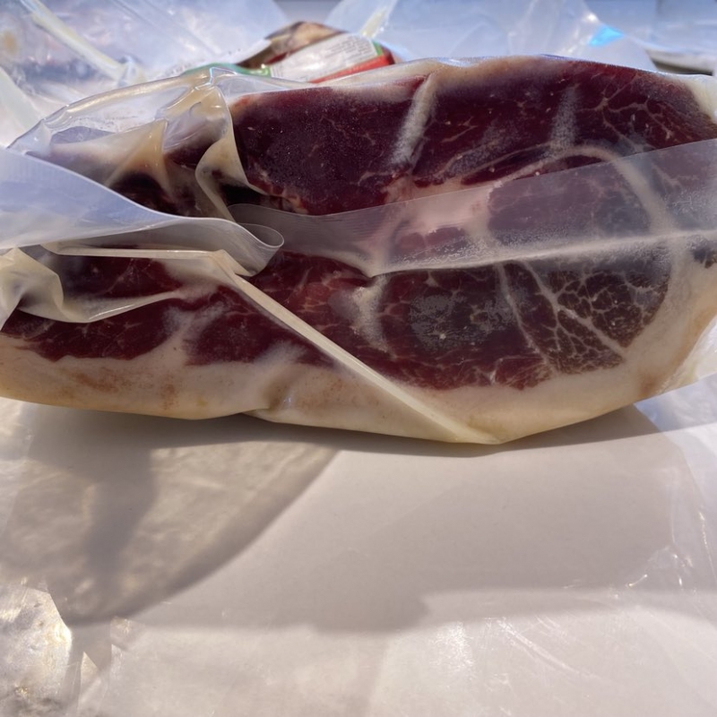 | Composition : | jambon de porc Iberique de bellota, sel, conservateurs (E252, E350) |