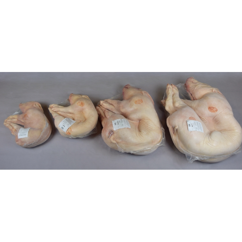 Votre cochon de lait sera propre, éviscéré, avec tête,emballé sous-vide individuellement recroquevillé.