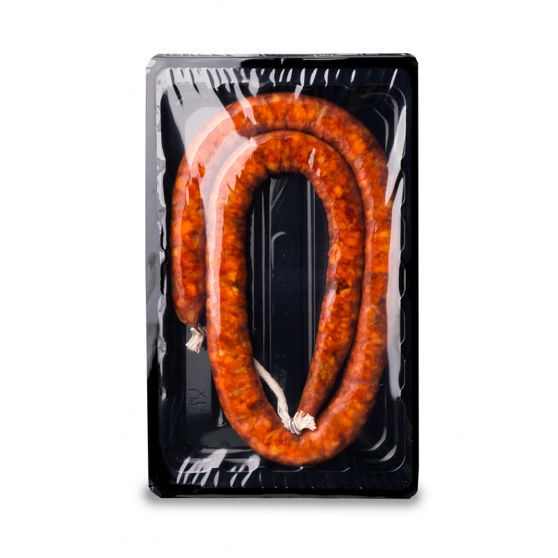 Cette chistorra est fabriquée par une entreprise familiale dans un petit village de Navarre. La viande exclusivement de truie provient de l'abattoir artisanal, ce qui garantit un goût authentique et une fraîcheur de premier ordre. Elles sont embossées dans des boyaux naturels d'agneau (calibre 24/26 mm) puis séchées 2 à 3 semaines avant d'être mise sous vide individuellement.