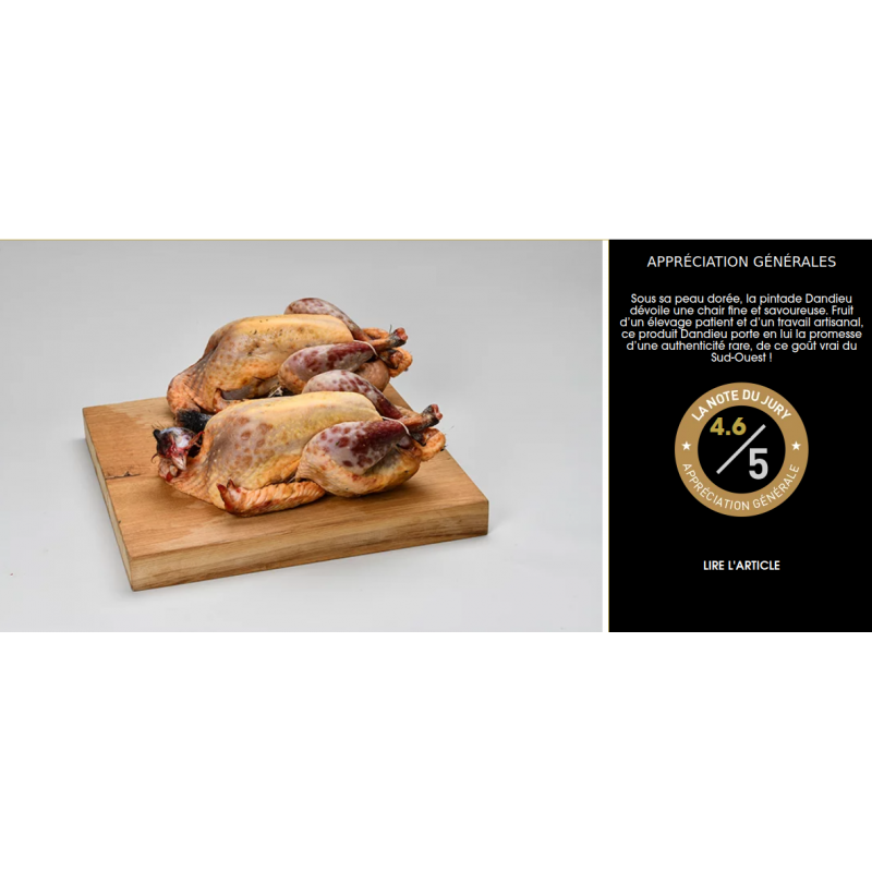 Lot de 2 Pintades vidée avec tête & abats (Dandieu, Landes, France)